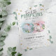 Convites de chá de bebê de gêmeos abóboras pequenas com um fundo branco simples, abóboras de aquarela azul e rosa, borboletas, flores, eucalipto, estrelas douradas e um modelo moderno de chá de bebê gêmeos que é fácil de personalizar.