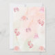 Esta é uma descrição de um convite doce para a chegada de uma menina. Tem um padrão de aquarela rosa e vermelho que inclui um carrinho de bebê, meias e outros detalhes.