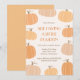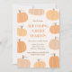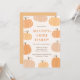 Este convite apresenta um tema de outono / halloween com ilustrações de abóboras. A mistura de fontes modernas sem serifa e com serifa adiciona interesse, enquanto a paleta pastel mantém o design elegante, calmo e neutro em termos de gênero.