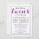 Ela está esperando gêmeos; É um menino e uma menina Convite de Chá de Bebê Personalizado por Fox & Nod. Este convite moderno e divertido certamente irá impressionar com lindas fontes, detalhes e um toque de cor. O verso coordenado tem listras diagonais sutis com um pequeno ninho e dois ovos.