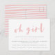 Convite de festa de chá de bebê, Oh garota. Design moderno minimalista com letras à mão. Altere a cor para combinar com o seu estilo.