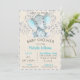 Convite de chá de bebê de elefante menino. As cores incluem azul e cinza. Ótimo para chás de bebê com tema de animais da selva ou safari. Convites de Chá de Bebê Elefante personalizados e impressos de forma personalizada e acessível com seus detalhes. Use as ferramentas de design para personalizar o texto, editar as fontes e cores ou adicionar suas próprias fotos para criar um convite de festa de Chá de Bebê Menino elegante.