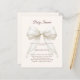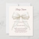 Organize uma celebração sofisticada com este convite de chá de bebê elegante e neutro em termos de gênero. O design apresenta um grande laço de cetim detalhado, decorado com fios delicados de pérolas contra um fundo creme suave. É a escolha perfeita para os futuros pais que preferem uma estética atemporal e clássica para a chegada do seu bebê.