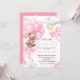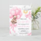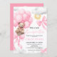 Convite de chá de bebê cor-de-rosa com ursinho de bebê fofo.