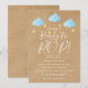 Com nuvens azuis adoráveis e estrelas douradas penduradas em cordas sobre um fundo kraft rústico e boêmio, este convite de chá de bebê ou para casais é perfeito para todos os meninos que estão a caminho. Adicione os detalhes da celebração em branco para criar o convite perfeito. Criado por Thisisnotme©