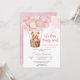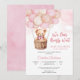 Celebre a chegada iminente do Bebê Elizabeth com este adorável convite de chá de bebê com ursinho. Com um design caprichoso de um urso em uma cesta levantada por balões pastel, este cartão define o tom perfeito para um encontro alegre. O céu rosa suave e o fundo de nuvens adicionam um toque doce, tornando-o ideal para homenagear a futura mamãe Carolina Anderson. Personalize com detalhes do evento e crie um souvenir que os convidados irão guardar. Perfeito para chá de bebê de menina, este convite combina charme, elegância e celebração.