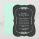 Convite de chá de casamento para casal elegante feito em cor cinza de quadro de giz, com gráficos de uma moldura decorativa verde menta em torno do texto personalizado. Texto em branco e verde menta está pronto para personalizar para a sua festa. Belo convite que qualquer casal adoraria.