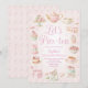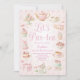 Doce e bonito em rosa Convite para chá! Apresenta um bule de chá, xícaras de chá, macarons, bolos, sobremesas, morangos, presentes, bolo e cupcakes. Todo o texto é editável. Ótimo para qualquer celebração e ocasião de chá!