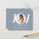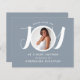 O Chá de fraldas do orçamento deste bebê moderno Convite é decorado com a palavra JOY em tipografia branca na moda num fundo azul. Facilmente personalizável com sua foto e detalhes. Michele Davies Studio