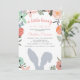 Adoráveis convites para chuveiros de bebês com tema primavera para seu coelhinho no caminho apresentam uma borda floral boho e uma silhueta de orelhas de coelhinho de cinza.