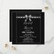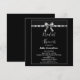 Convite de chá de lingerie preto e branco elegante e minimalista com um laço prateado e caligrafia estilosa.