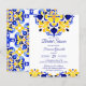 Convite de chá de lingerie mexicano vintage de azulejos azuis e amarelos Talavera, convites de chá de lingerie impressos econômicos, padrão de azulejos azuis Mediterrâneo Italiano, padrão de azulejos gregos azuis Maiolica, cartões de convite de chá de lingerie