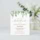 Convide seus amigos e familiares para o brunch de noivado com esses cartões-postais de convite de chá de noiva botânicos de eucalipto, elegantes, mas casuais. Esses cartões de convite de casamento econômicos têm uma opção de envelope. Personalize com nome, data do chá de noiva, local e qualquer outra informação. Adicione o site e qualquer outra informação no verso. Esses convites de chá de noiva com folhagem única farão uma impressão duradoura. DIREITOS AUTORAIS © 2020 Judy Burrows, Black Dog Art - Todos os Direitos Reservados. Convite de Chá de Noiva Botânico Econômico com Folhagem