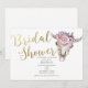 Convite de Chá de Noiva com Caveira de Vaca Floral Dourado