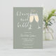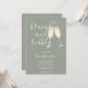 Um convite elegante para chá de noiva com brunch e espumante, apresentando taças de champanhe e nome em letra cursiva, este convite sofisticado pode ser personalizado com suas informações em letras elegantes sobre um fundo verde sage. Criado por Thisisnotme©