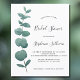 Esses convites de Chá de Noiva simples e elegantes são decorados com um único ramo de eucalipto e tipografia moderna.