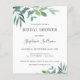 Convide familiares e amigos para um Chá de Noiva com este convite elegante decorado com eucalipto aquarela e folhagens.