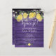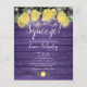 Com limões, folhagens e luzes de corda bonitas em um fundo de madeira rústica roxa, este convite de chá de noiva econômico pode ser personalizado com as informações do seu evento especial. Criado por Thisisnotme©