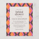 Celebre a noiva com este convite de chá de noiva ousado e moderno, apresentando um padrão geométrico vibrante em tons de laranja, rosa e marrom. O design elegante combina estética retrô com elegância contemporânea, criando um cenário atraente para os detalhes do seu evento. Ideal para noivas que amam papelaria única e que chama a atenção. Perfeito para uma reunião pré-casamento divertida e animada.
