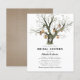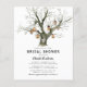 Convites de chá de noiva rústicos econômicos com tema florestal com tronco de carvalho aquarelado, um coração esculpido com as iniciais do casal, lanternas de luz vintage e um modelo elegante para a comitiva de noiva.