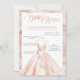 Este convite de chá de noiva apresenta um vestido de noiva em aquarela impressionante em um cabide elegante dourado rosa. A arte é lindamente emoldurada por uma textura de aquarela giratória com acentos de folha de dourado rosa falso, adicionando um toque de glamour. O verso é impresso com a mesma textura de aquarela giratória, unindo perfeitamente o design. Um convite perfeito, simples e feminino para mulheres com um senso de moda e estilo!