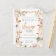 Convite de Chá de Noiva Boho de Abóbora de Outono. A frente tem uma borda de abóboras e folhagens suaves de outono. A parte de trás do convite tem um padrão floral lindo. Personalize este design, basta selecionar o botão "Personalize" acima!