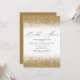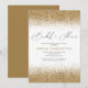 Lindo convite de chá de noiva dourado, apresentando um efeito de brilho dourado, uma bela fonte de texto sobre um fundo branco clássico. O cartão também possui um modelo de convite de noiva moderno que é fácil de modificar. Os estilos de fonte, tamanhos e cor de fundo podem ser alterados clicando no link personalizar após personalizar.