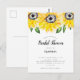 Convite de postal de chá de noiva tema girassol elegante. Desenhado e ilustrado com amor por Kristine Lee Designs www.kristineleedesigns.com