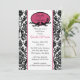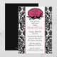 Comece seu evento da maneira certa com nosso convite de chá de noiva com uma bela moldura oval com pássaros em galhos com damasco branco e preto com acabamento rosa. Combinação de cores branca e preta na moda. Basta personalizar nosso convite com as informações do seu casamento e você estará pronto