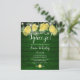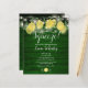 Com destaque para limões, folhagens e luzes de corda bonitas em um fundo de madeira verde rústica, este convite de chá de noiva divertido e econômico pode ser personalizado com as informações do seu evento especial. Projetado por Thisisnotme©