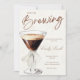 Convite de chá de noiva espresso martini com um design sofisticado inspirado em coquetéis, tons castanhos ricos e tipografia moderna. Perfeito para um tema de chá de noiva “O Amor está Cozinhando”, este convite é ideal para uma celebração elegante e moderna. Personalize facilmente com os detalhes do seu evento para criar uma festa divertida e sofisticada.