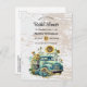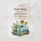 Convite de Chá de Noiva Floral Rústico de Madeira - Nosso convite de chá de noiva rústico e country apresenta um velho caminhão de fazenda adornado com girassóis e as iniciais da noiva e do noivo no para-choque. O fundo é branco rústico e madeira de celeiro natural descascada. Este é o convite perfeito para a noiva que ama um tema rústico e country. O convite fará parte de uma coleção.