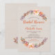 Convite de chá de noiva floral rústico apresenta uma bela grinalda de cores de outono com um fundo texturizado de juta. Mais convites de casamento e chá de noiva e suprimentos para festas estão disponíveis na minha loja BaraBomDesign.