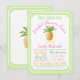 Convite de chá de noiva de abacaxi com abacaxi bonito em um fundo fresco verde lima e branco. Este convite de chá de noiva luau é facilmente personalizado para o seu evento, basta adicionar seus detalhes no estilo de fonte e redação de sua escolha. Você também pode adicionar uma cor de fundo e remover ou redimensionar o abacaxi na parte de trás. Este é um design impresso sem folha verdadeira, brilho, etc.