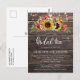 Convite de Chá de Bebê com Luzes de Girassóis Rústicos em Postcard apresenta um girassol deslumbrante e um buquê de respiração de bebê com luzes de jarro de pedreiro em um fundo de madeira rústica de celeiro. Tipografia bonita e rústica, estilo fazenda. Se precisar de ajuda para personalizar seu convite ou se estiver procurando produtos coordenados, não hesite em entrar em contato por e-mail. O verso do postcard tem um espaço para o seu endereço de retorno e linhas para escrita à mão. Se preferir não ter essas áreas, basta excluir as camadas. O postcard faz parte de uma coleção - coordena com outros produtos.