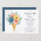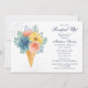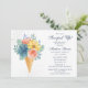 Este convite de chá de noiva apresenta flores elegantes em aquarela e macarons em um cone de sorvete em tons de coral suave, azul turquesa, azul e amarelo em um fundo branco com as informações do seu chá de noiva à direita. Personalize editando o texto nas caixas de texto. Criado para você pelo Evco Studio www.zazzle.com/store/evcostudio