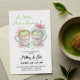 Celebre um par perfeito com este convite de chá de noiva "Um Matcha Feito no Céu". Este design moderno em estilo coquette apresenta matcha lattes pintados à mão com aquarela adornados com delicados laços rosa e arte de latte com coração romântico. É a escolha ideal para um chá de noiva, festa de noivado ou um brunch de casal. Personalize facilmente o texto para homenagear o casal feliz e inclua todos os detalhes do seu evento.