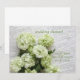 foto de hidrângeas brancas e verde-claro em um fundo com escrita à mão em estilo antigo