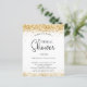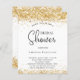 Um fundo branco elegante. Decorado com purpurina dourada falsa. Personalize e adicione um nome e detalhes da festa. O nome é escrito com uma fonte de letra manuscrita