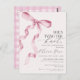 Convite de Chá de Panela Rosa Pastel com Laço Coqu