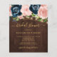 Modelo de convite de chá de noiva rústico e sofisticado a um preço acessível, em um fundo de madeira de celeiro marrom escuro, apresentando uma borda floral de rosas peônia rosa e azul-marinho e uma tipografia elegante e moderna em escrita à mão em dourado falso.++++++++++++++ Fácil de personalizar com seus detalhes! +++++++++++ O convite é adequado para um chá de noiva rústico ao ar livre no jardim, brunch ou almoço. ++++++++++ POR FAVOR, LEIA ISSO ANTES DE COMPRAR! Este é um cartão de casamento econômico impresso em uma folha de papel (cada folha contém um cartão). ++++ Para a melhor relação preço-qualidade, nosso conselho é escolher o tipo de papel Semi-Brilho (é grosso o suficiente para ser usado em papelaria) ++++ Se precisar de envelopes, escolha a OPÇÃO DE ENVELOPE. +++ Verifique novamente todas as informações e ortografia do seu texto porque você receberá exatamente o que vê - ninguém mais verificará nada antes da impressão. ++++ Este cartão é projetado para o tamanho 4,5" x 5,6". Caso você escolha outro tamanho do cartão e o texto ultrapasse a página, tudo precisará ser corrig