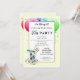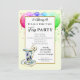Convite alegre e moderno para festa de chá para celebrar estar livre de dívidas (ou queima de hipoteca, festa de inauguração, aniversário, qualquer coisa!). O convite apresenta balões, xícara de chá em aquarela, texto em caligrafia e balões e mensagem final no verso.