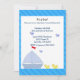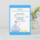 Uma cena fofa, veleiro azul, com pequenos patos amarelos na água e pássaros azuis no céu. Uma borda estriada diagonal azul. Personalize com todas as informações do seu chá de fraldas conforme desejado.
