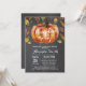 Convite de Chá de Bebê de Abóbora de Outono. Fundo de Quadro Negro. Convite de Chá de Bebê de Outono. Convite de Chá de Bebê Menino ou Menina. Para personalização adicional, clique no botão "Personalize" e use nossa ferramenta de design para modificar este modelo.
