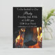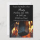 O convite de chama de fogo de festa tem uma chama laranja queimando blocos de madeira na parte inferior até o meio e um fundo preto com um local para colocar todo o seu texto de convite.