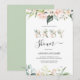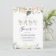 Celebre o chá da sua pequena com um suspiro de boas-vindas. Rosas cor-de-rosa pálido e folhagens com letras florais douradas 'BABY'. Design moderno e elegante.