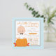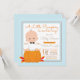 Convite de chá de bebê do pequeno abóbora com adorável bebê menino sentado em uma abóbora em um fundo de bolinhas azul bebê e marrom. Você pode personalizar facilmente esses convites de chá de bebê de abóbora para o seu evento, simplesmente adicionando seus detalhes.