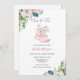 É hora do chá com a mamãe que está esperando! Este convite divertido de chá e tema de elefante para chá de bebê apresenta um elefante em aquarela sentado em uma xícara de chá rosa com uma borda de flores cor-de-rosa e folhagens. Personalize com suas informações ou clique em "Clique para personalizar ainda mais" para editar estilos de fonte, tamanho e cores.