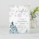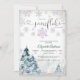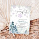 Celebre a chegada do seu pequeno com este encantador convite de chá de bebê flor de neve de inverno. Com flocos de neve roxos e prateados brilhantes, árvores de pinheiro em aquarela e tipografia elegante, este design captura a magia de um país das maravilhas nevado. Perfeito para chás de bebê temáticos de inverno, combina charme caprichoso com estilo atemporal. Personalize com seus detalhes para criar um souvenir memorável para os convidados.