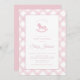 Celebre sua bebê com este convite de chá de bebê em xadrez rosa clássico que apresenta um doce cavalinho de pau em aquarela. Totalmente personalizável com os detalhes do seu evento, este charmoso design adiciona um toque de suavidade e tradição à sua celebração.